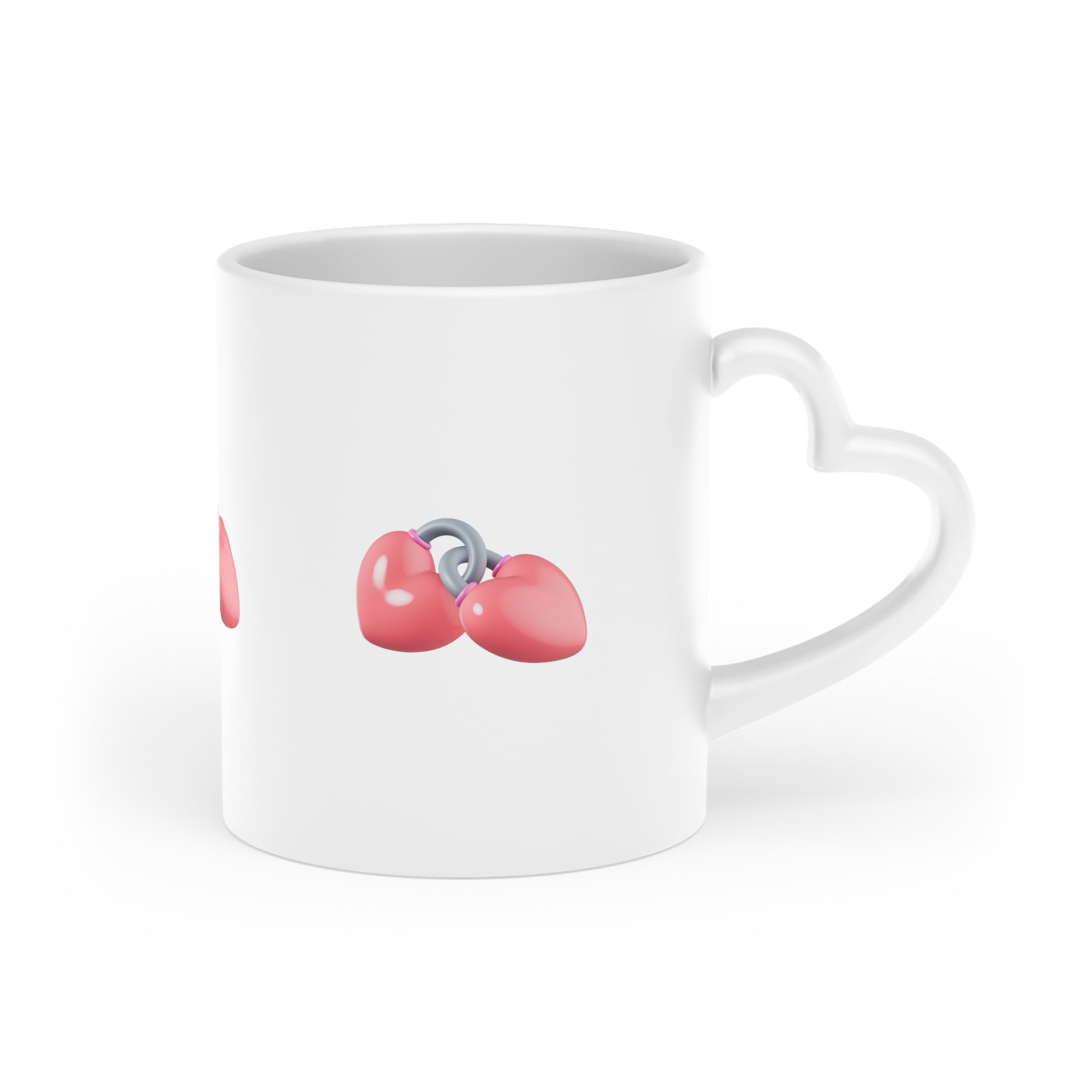 This glossy white ceramic mug brings a little playful romance to everyday sips. The 11 oz mug features a smooth Duraglaze coating and bright, crisp printing that showcases a cute, cherry-like heart motif wrapped around the cup. The distinctive heart-shaped handle adds a tactile, whimsical touch that makes holding your morning coffee or evening tea feel a bit more personal. Built for regular use, it’s dishwasher-safe and REACH certified, so the colors stay lively wash after wash. Simple, cheerful, and made to fit into cozy routines and heartfelt moments.