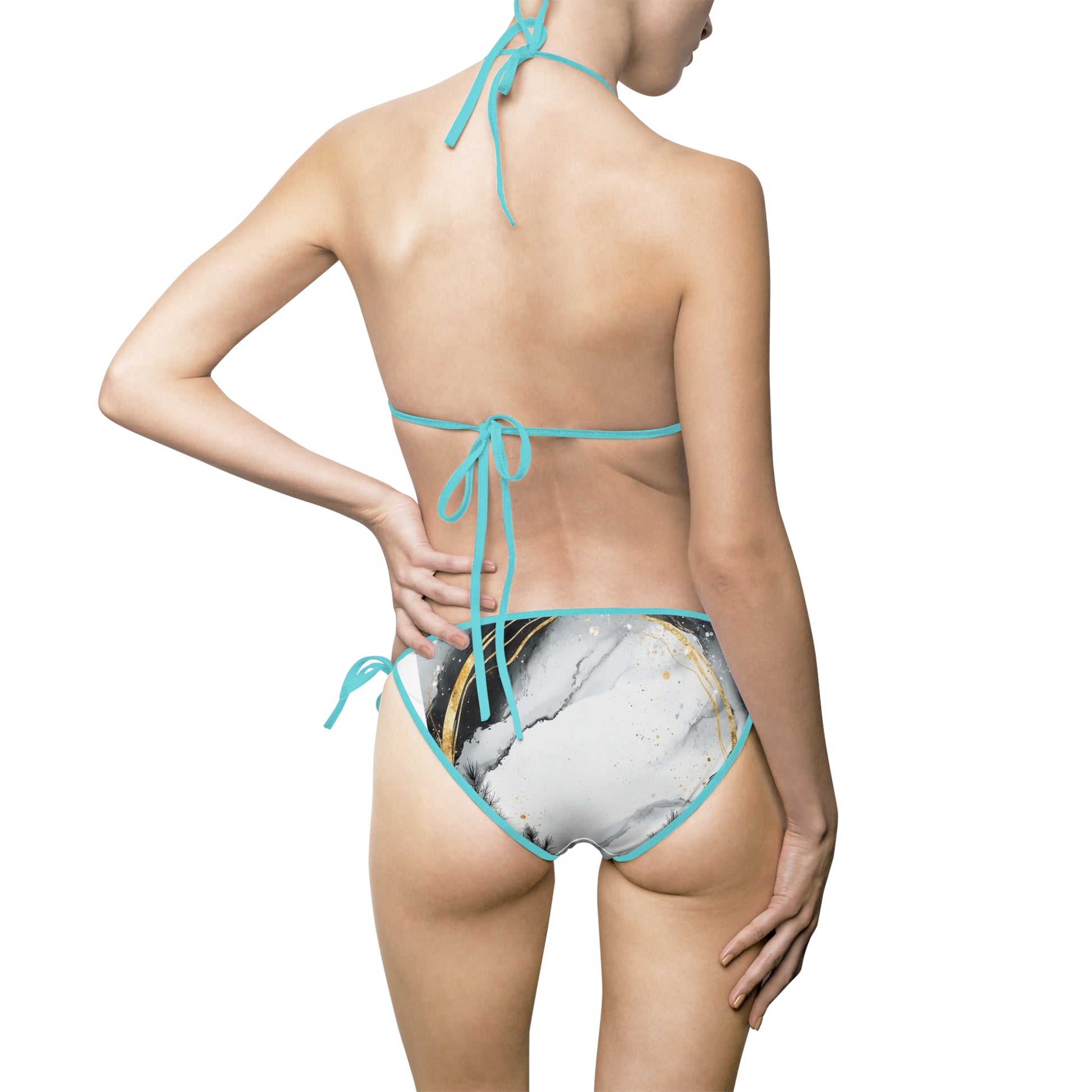 Marble Print Tie-Side Bikini — Women’s Two-Piece Swimsuit